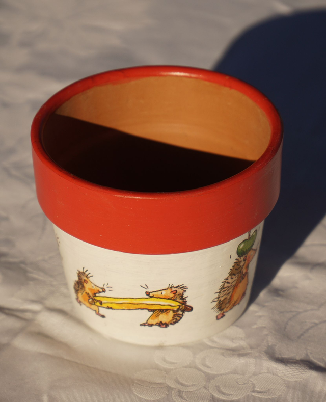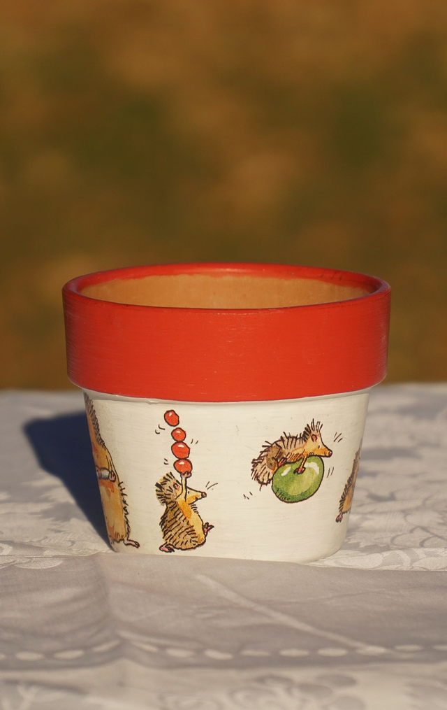 🍂 Übertopf mit herbstlichem Igelmotiv – Handgefertigt in Serviettentechnik